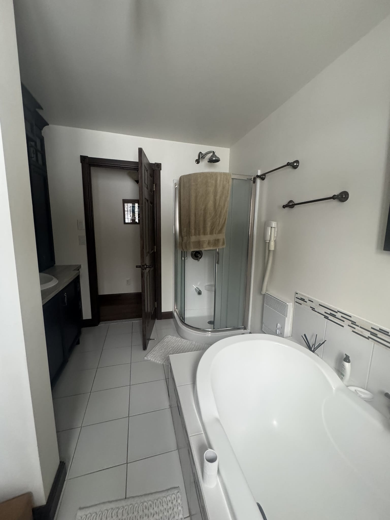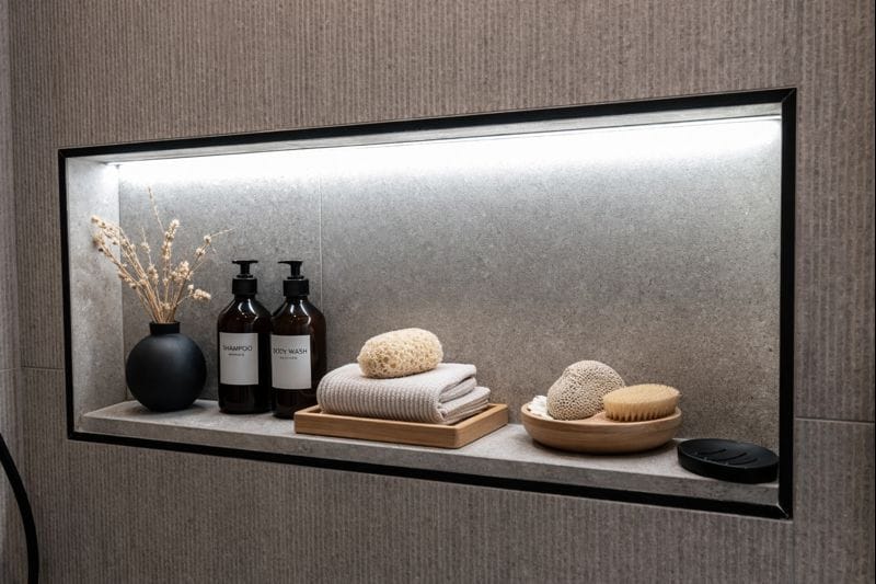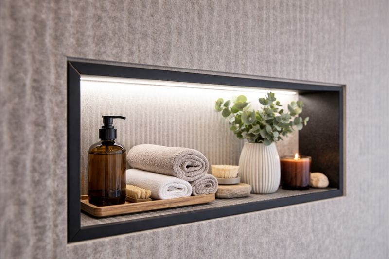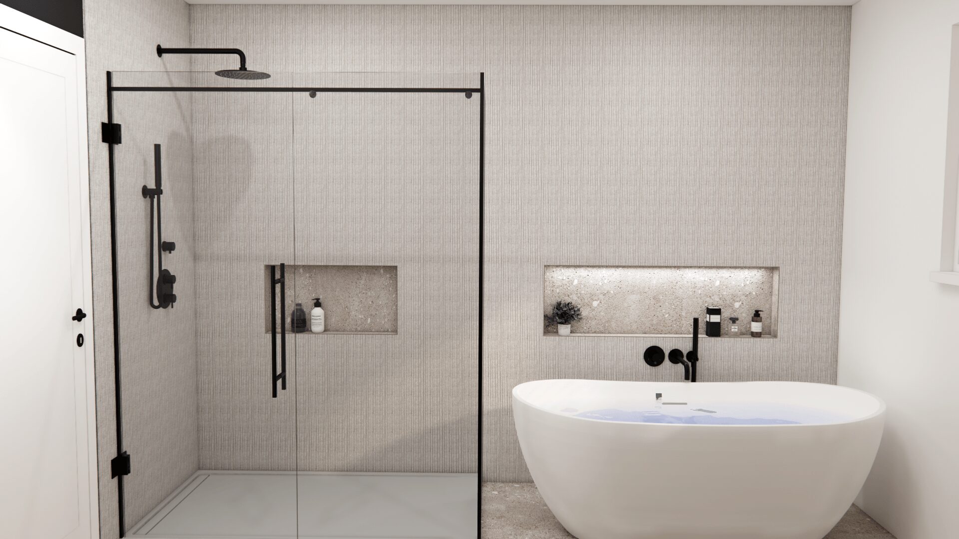 La salle de bain a été pensée comme un véritable espace de détente, parfaitement intégré à l’environnement montagnard. Après une journée de ski, ce lieu épuré devient un sanctuaire de bien-être où chaque détail reflète l’harmonie entre confort et élégance minimaliste.