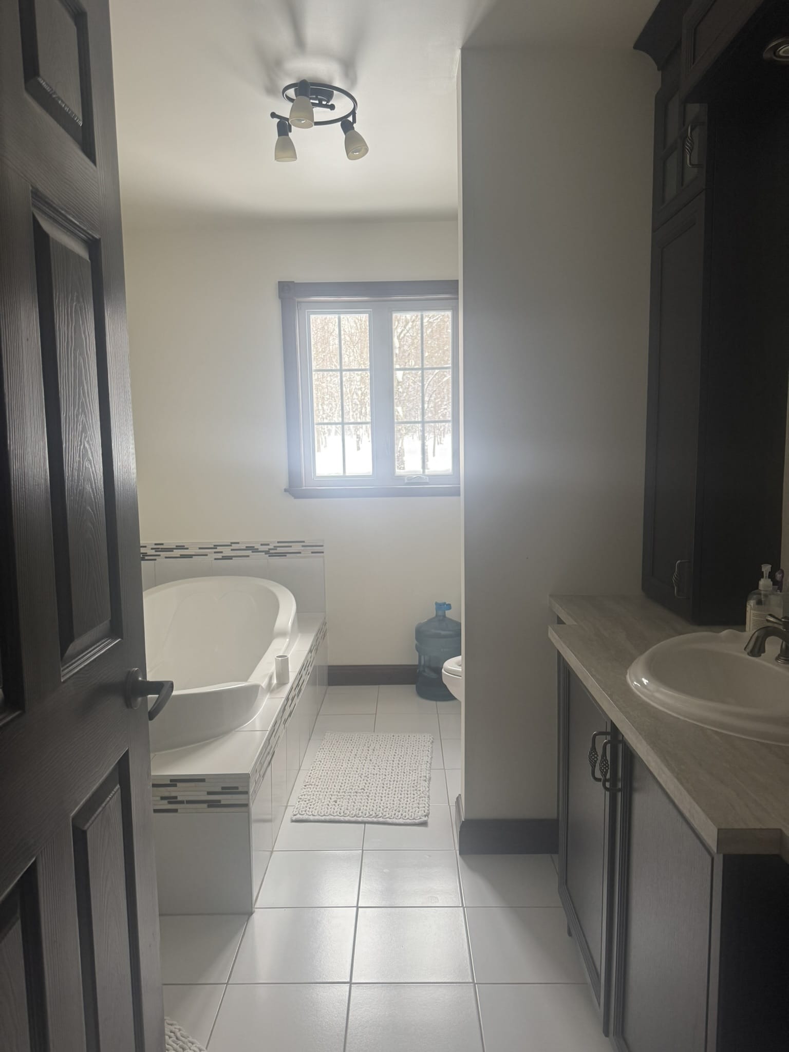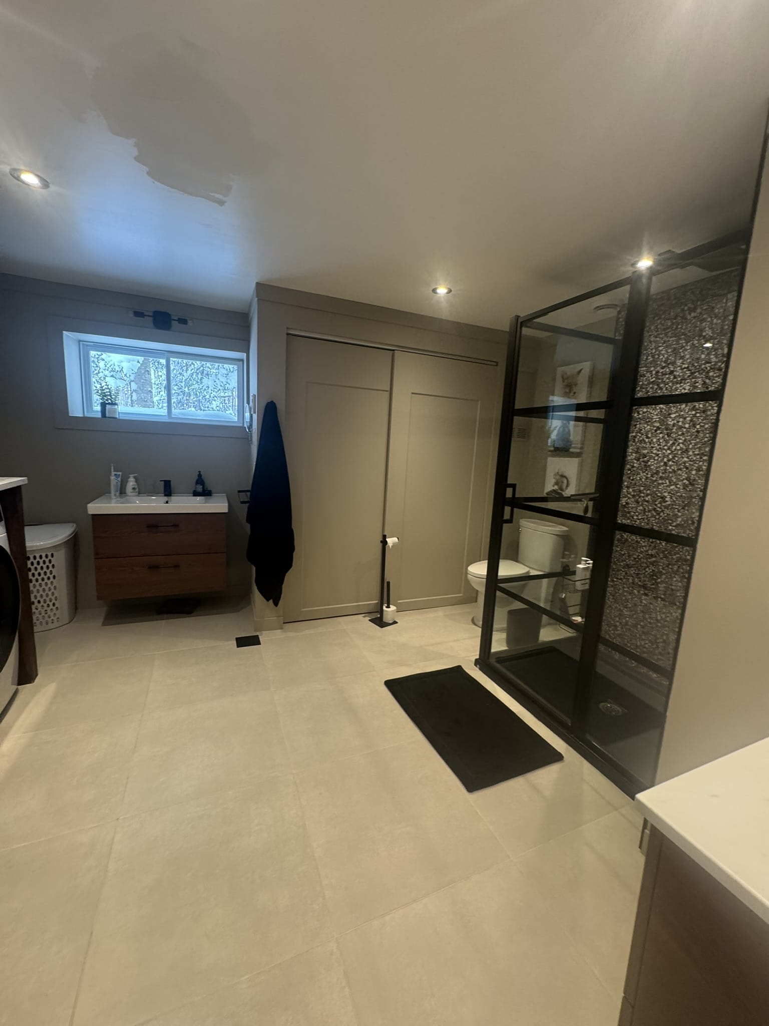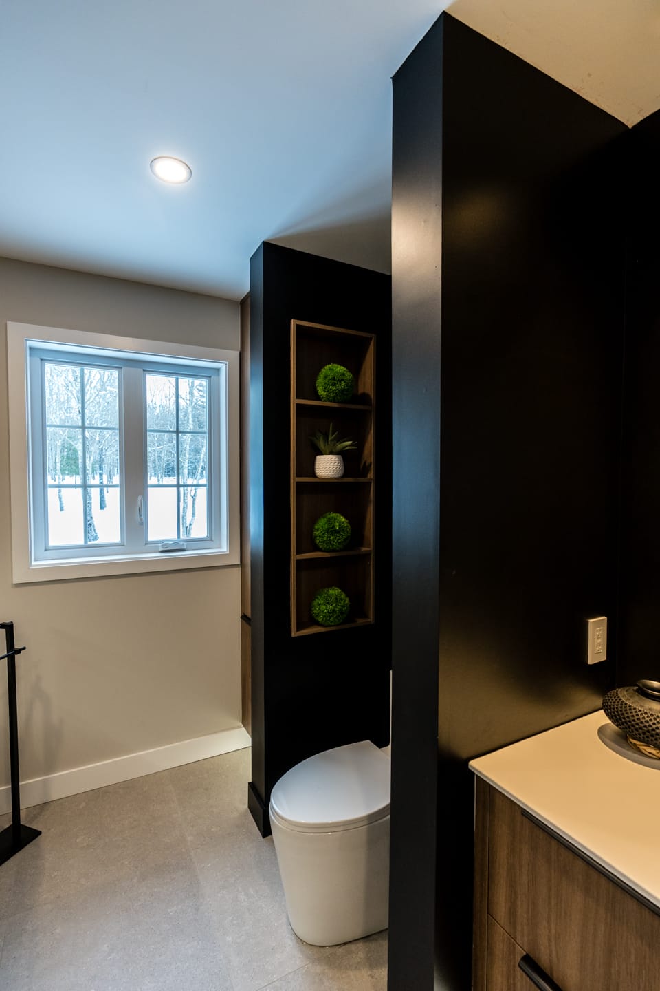 - rénovation chalet Sutton, style Japandi haut de gamme, ski-in ski-out, cuisine Dekton Enzo Eclipse, luminaires du Brésil, salle de bain luxe, mobilier sur mesure, AMO Design Estrie Montérégie