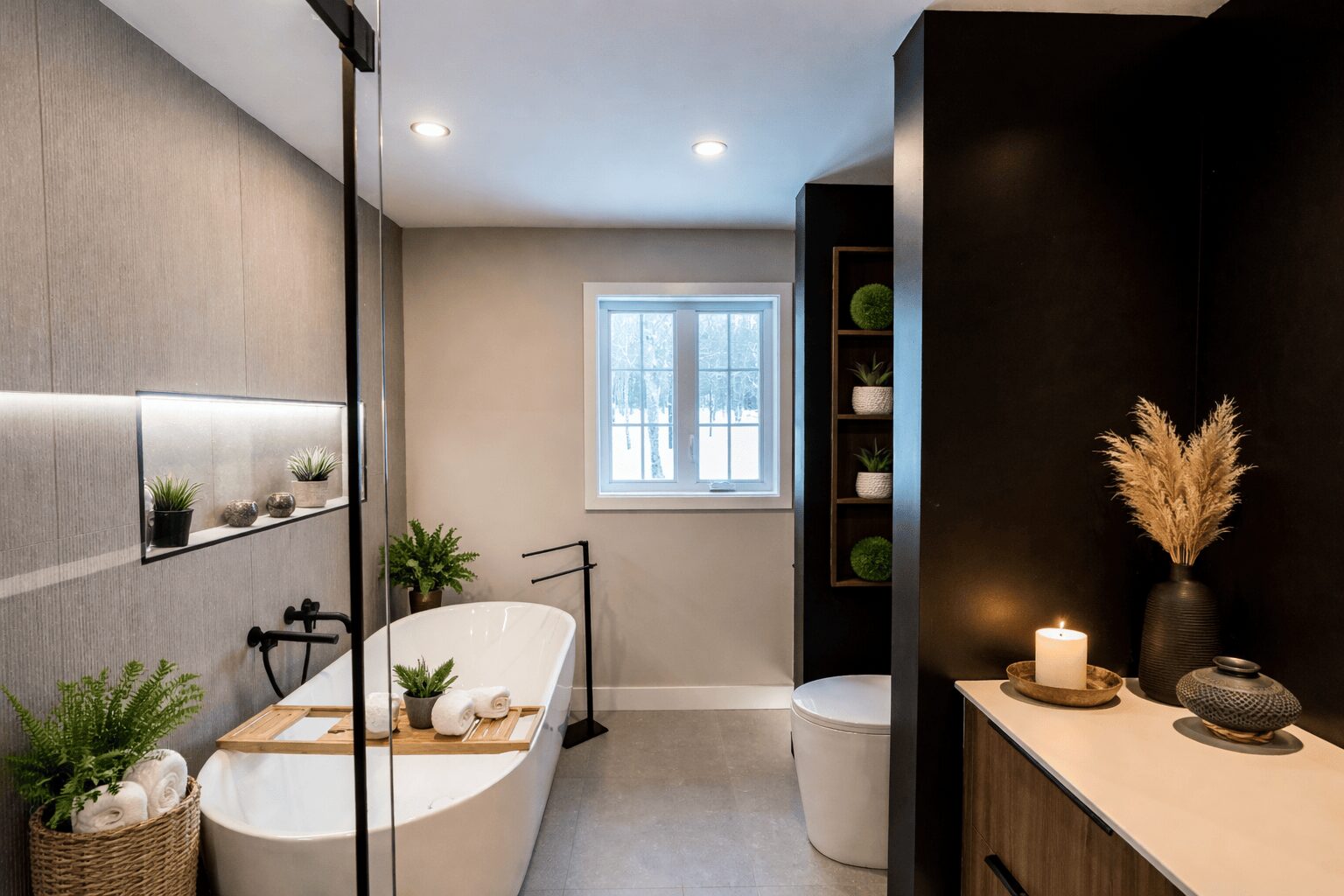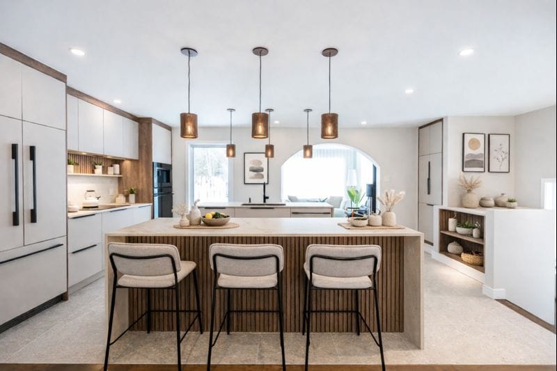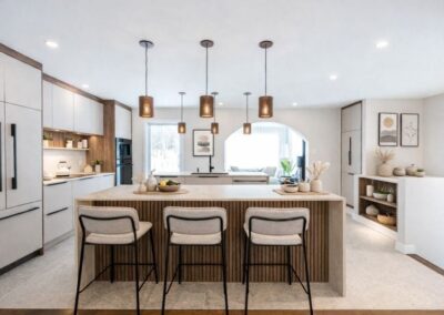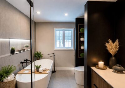 Ce projet illustre la capacité d’AMO Design à repousser les limites de l’architecture intérieure en Estrie et Montérégie. Le style Japandi, mariant l’esthétique scandinave et japonaise, confère à ce chalet rénové une atmosphère intemporelle et apaisante.