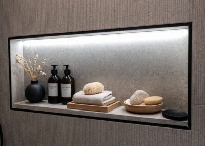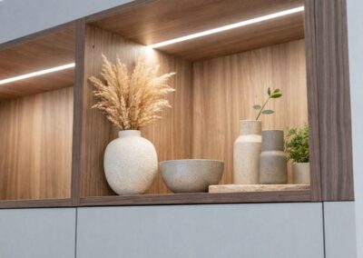 En tant que designer d’intérieur, AMO Design a coordonné le projet de A à Z, en collaborant avec les meilleurs experts en construction et en finition. Le mobilier sur mesure, les choix de matériaux haut de gamme et la qualité des détails démontrent un savoir-faire précis et créatif.