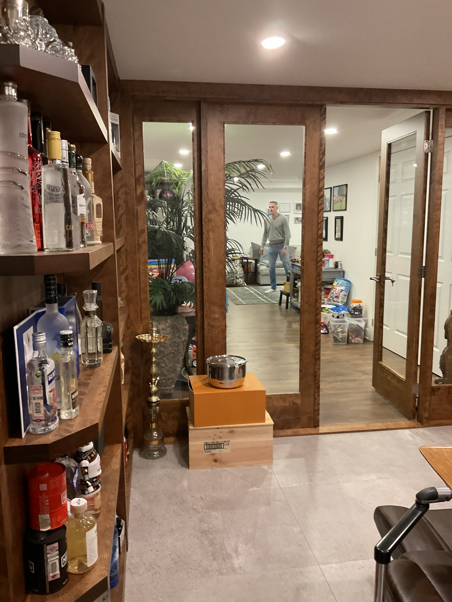 Ce projet de rénovation à Saint-Constant illustre l’art de transformer un espace souvent utilitaire en un véritable lieu de prestige. Le sous-sol a été métamorphosé en un lounge haut de gamme, pensé pour des propriétaires en quête d’élégance, de confort et de raffinement.
