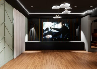 Pour compléter ce sous-sol exclusif, une salle de gym privée et un sauna sur mesure ont été intégrés, offrant aux occupants un espace bien-être directement à domicile. Cette approche démontre la capacité d’AMO Design à imaginer des environnements où confort, luxe et fonctionnalité cohabitent harmonieusement.
