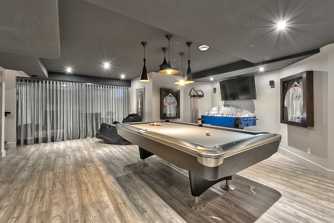 Man cave haut de gamme à Saint-Constant : un espace sur mesure alliant loisirs, confort et élégance