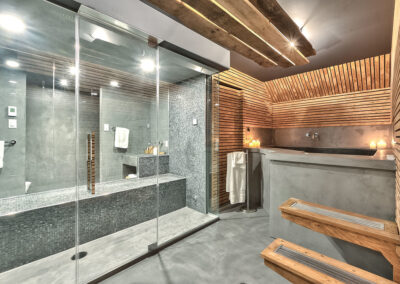 Pour la détente, le projet intègre un spa haut de gamme avec sauna et hammam, transformant la maison en véritable sanctuaire de bien-être. Enfin, un espace lounge raffiné offre un lieu propice à la relaxation, pensé pour marier convivialité et élégance.