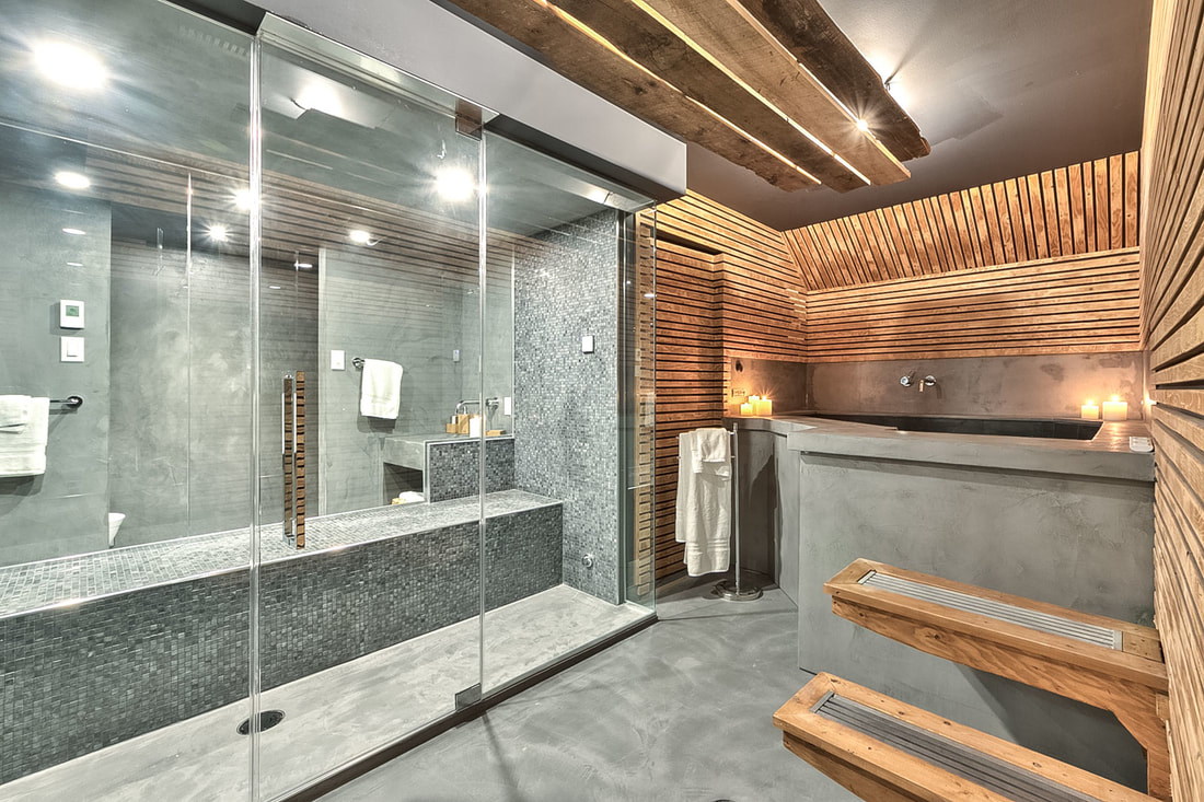 - man cave haut de gamme Saint-Constant, salle de billard conviviale, bar sur mesure élégant, salle d’entraînement vitrée, spa avec sauna et hammam, espace lounge raffiné, design intérieur masculin, aménagement résidentiel sur mesure, matériaux intemporels et durables