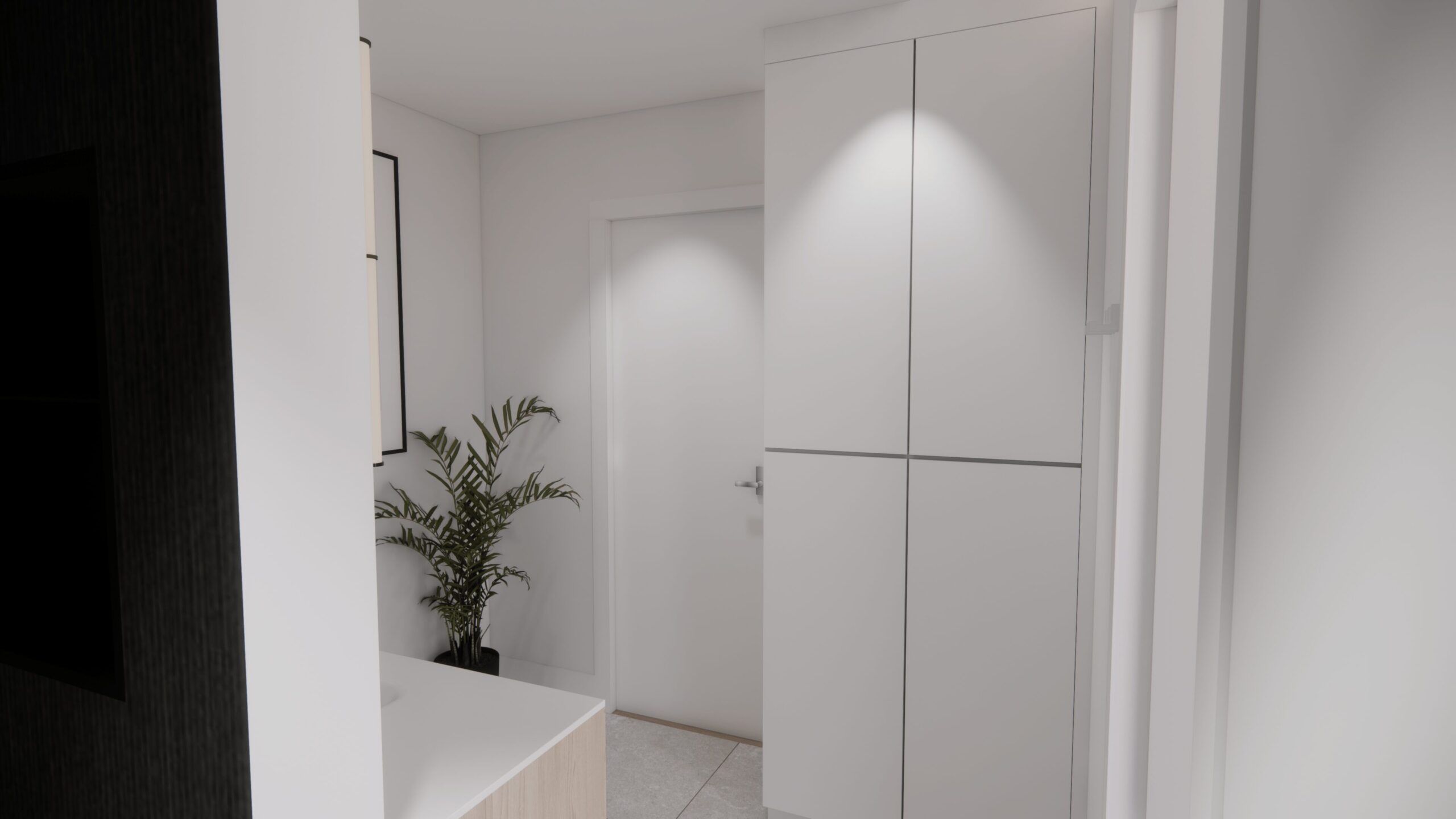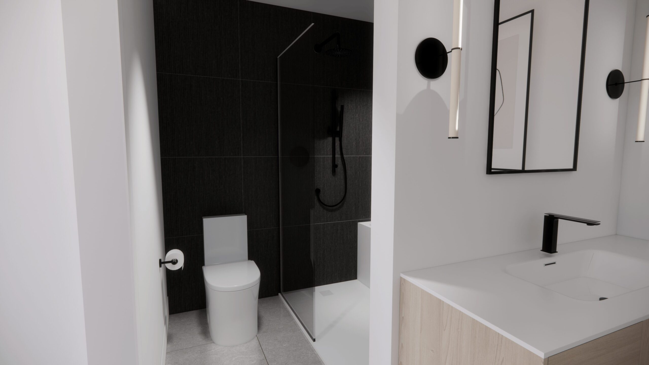 La salle de bain, conçue dans un style européen yin et yang, reflète la précision et le souci du détail propres à AMO Design. Chaque mètre carré a été optimisé pour allier praticité et esthétisme, créant un lieu intime et apaisant où confort et raffinement se rencontrent.