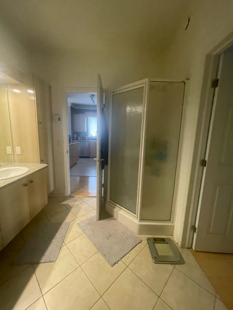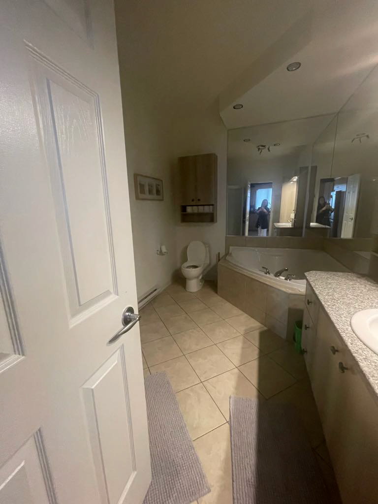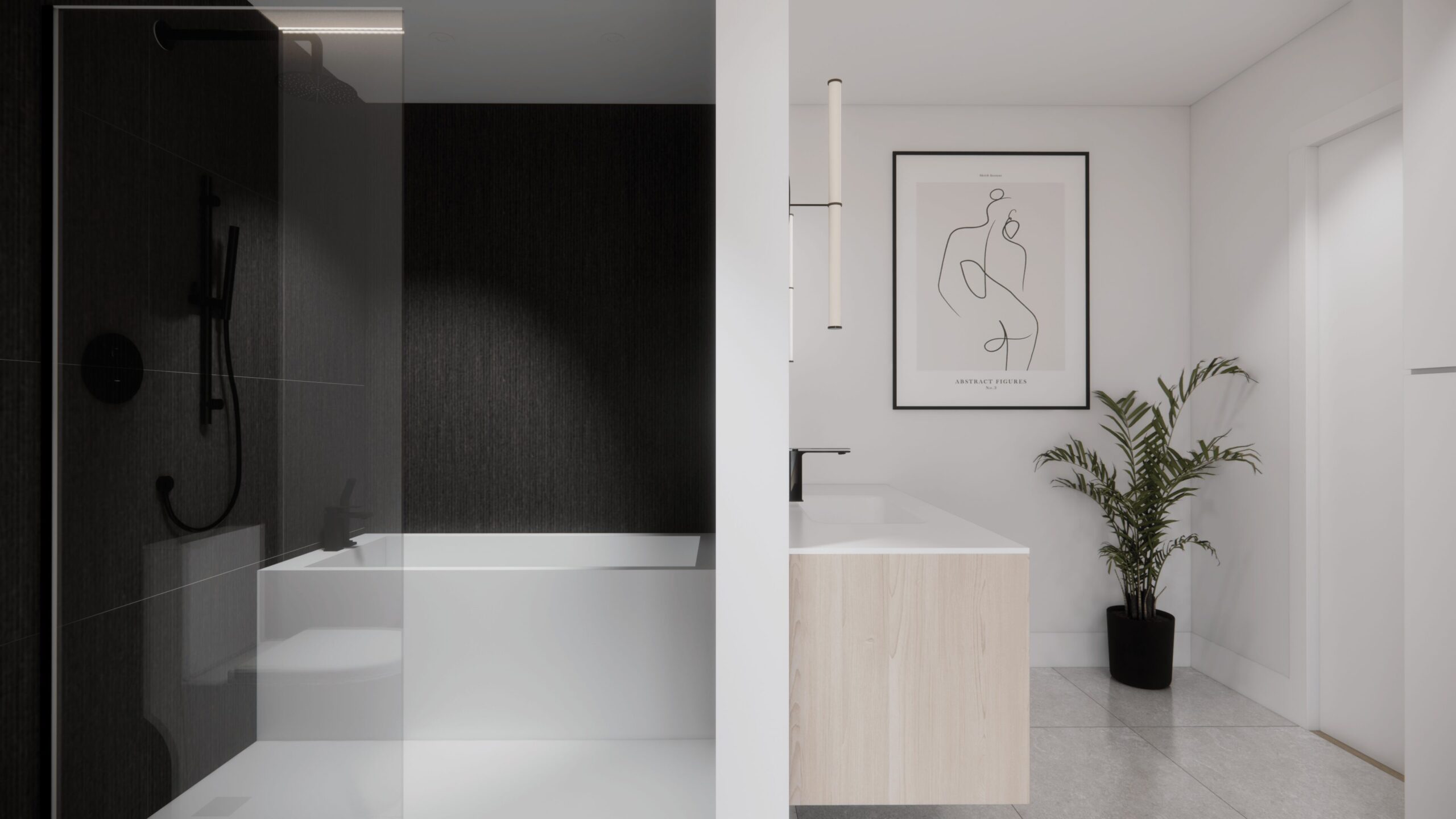 - rénovation condo Saint-Bruno, design intérieur haut de gamme, aire ouverte lumineuse, cuisine avec comptoir sans joint, salle de bain yin et yang, rénovation résidentielle élégante, AMO Design Estrie Montérégie