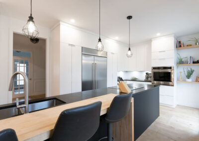 Projet Julie Dermine à Boucherville : une cuisine sur mesure élégante et fonctionnelle avec comptoir en granite St-Henri
