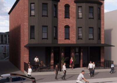 Projet commercial à Granby : refacing patrimonial d’une bâtisse en brique rouge