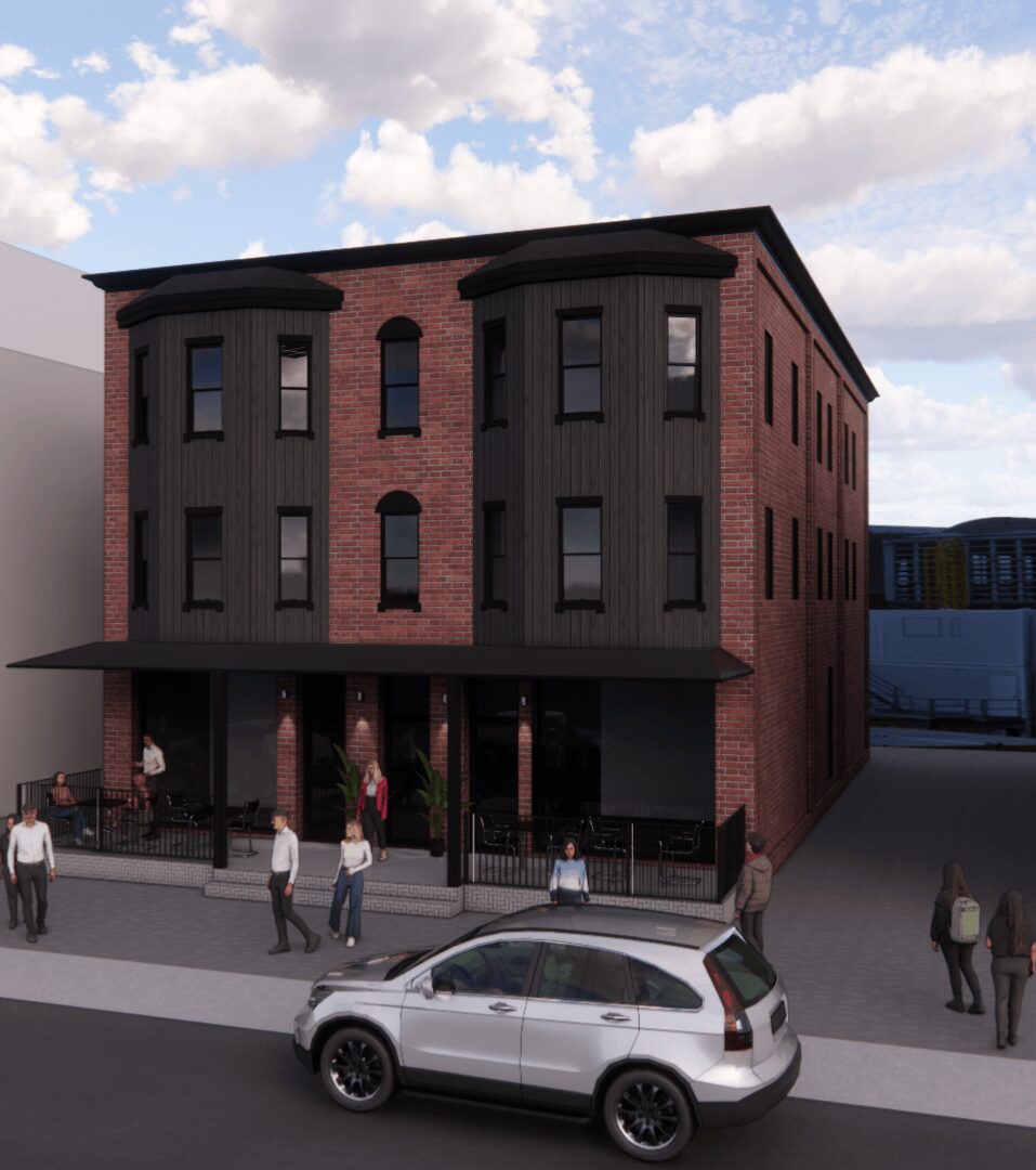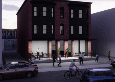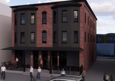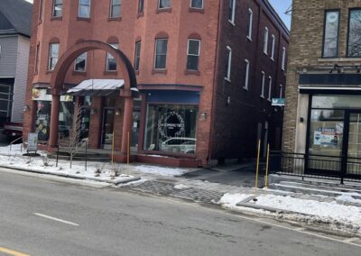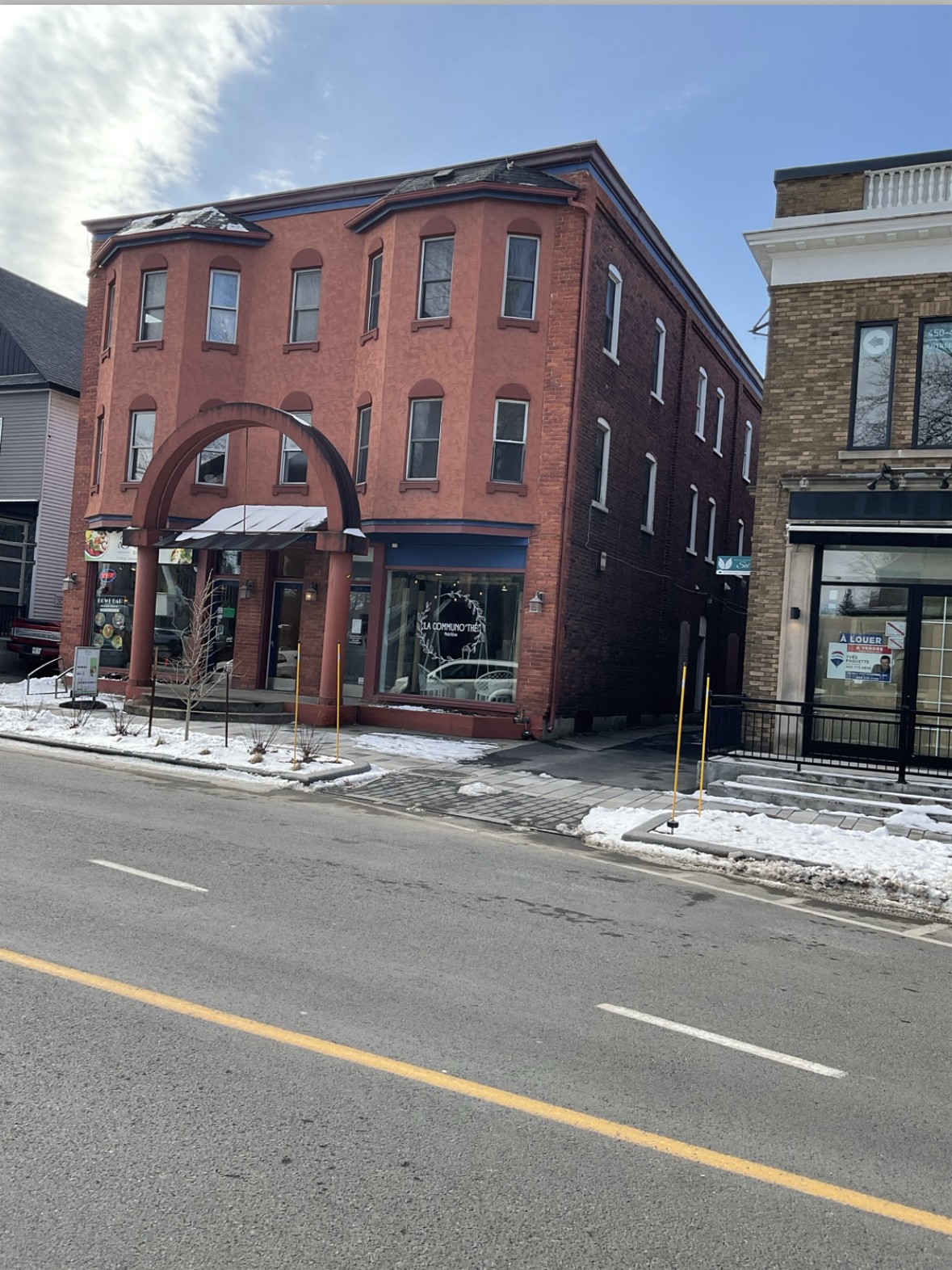 - rénovation patrimoniale Granby, refacing commercial, façade brique rouge, moderne et patrimoniale, designer d’intérieur Granby, AMO Design Estrie Montérégie