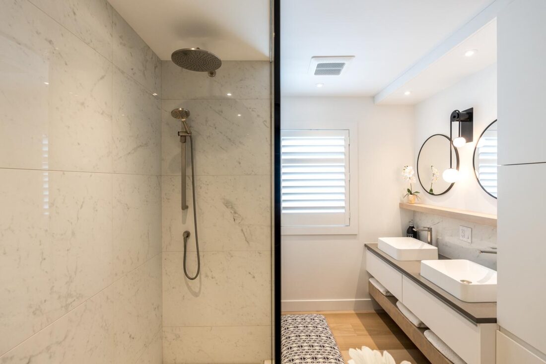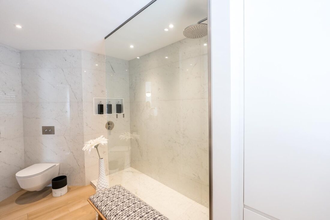 La cuisine design, pensée dans un esprit contemporain, se démarque par son élégance sobre et ses matériaux nobles. Chaque détail, des surfaces épurées aux jeux de lumière, contribue à créer un environnement convivial, idéal pour la vie quotidienne comme pour recevoir des invités. La salle de bain haut de gamme, quant à elle, reflète le même souci d’équilibre entre confort et esthétisme. Ses lignes claires et son aménagement réfléchi en font un lieu de détente intemporel.